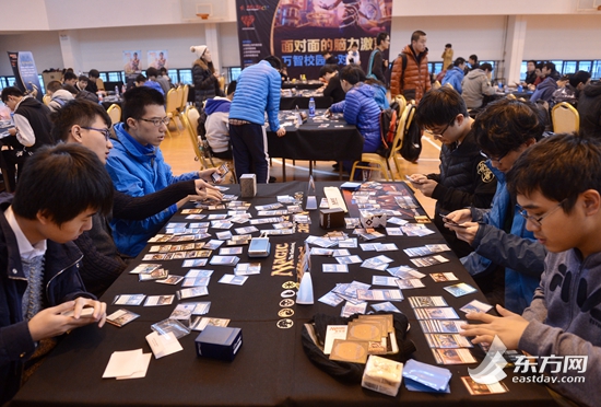 东方网记者徐程11月26日报道:由共青团上海市委员会、上海市体育局、上海市青年联合会、上海市体育总会指导,由上海青年体育协会和威世智中国共同主办,青年报协办的“面对面的脑力激荡-万智校园大对决”校际争霸赛今天在上海工程技术大学体育馆举行。共有来自上海的十余所高校的27支队伍参加了比赛。