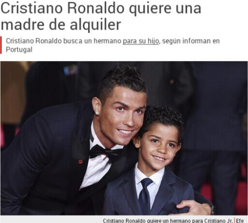 原标题: 单身C罗也要学梅西要二孩儿?已在美国寻代孕妈妈