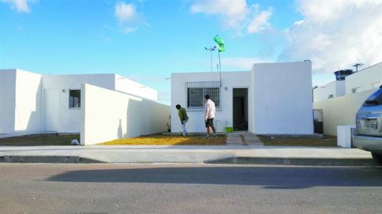 沿着孤单简陋的红砖小屋再往前走不到50米,又是截然不同的景象。20幢一层楼的白色平顶小屋紧挨着排列,甚至可以闻到尚未散去的外墙油漆味。身材健硕的路易斯,正和邻居在屋前的小花园里踢球。