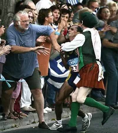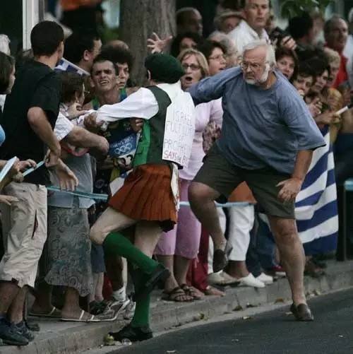 2004年雅典奥运会的最后一项比赛,当时正在进行的男子马拉松比赛发生了一起意外。