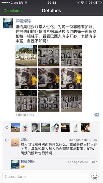 最让陈菁感动的是里约奥运会组委会对志愿者的尊重,开幕式举行前,她在自己朋友圈贴出多张照片并写道,巴西组委会将所有志愿者的照片都打印出来,张贴在马拉卡纳每个角落。“里约奥组委非常人性化。”