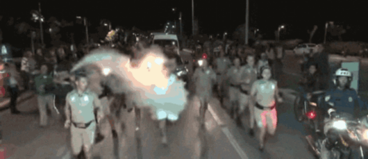 据《赫芬顿邮报》等媒体报道,巴西时间7月12日,有一名“歹徒”在火炬传递途中,突然拿着灭火器冲出人群,对着火炬就是一通狂喷,幸好有安保人员及时反应才没有酿成大祸。